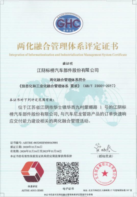 近日,公司順利通過兩化融合管理體系評(píng)定,并獲得評(píng)定證書。